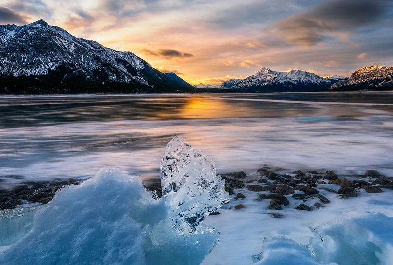 这位是亚伯拉罕湖边上的奇观。一个冬天里,湖水的水位变化,大雪覆盖又被大风吹动,在湖边形成了奇形怪状的冰雕造型。看过了冰泡湖里美丽奇妙的冰泡之后,来到湖边仔细寻找,果然有意外惊喜。
