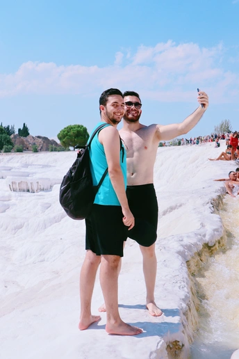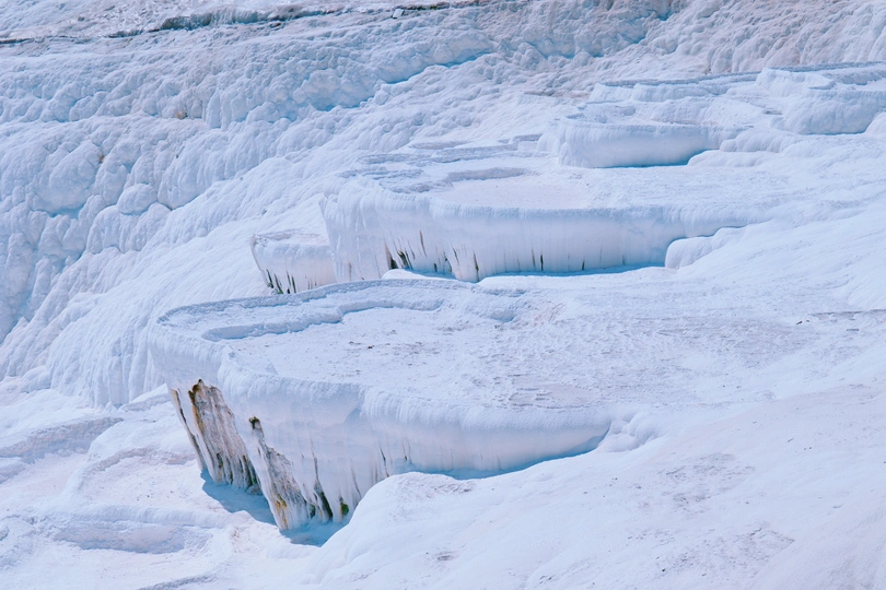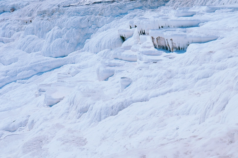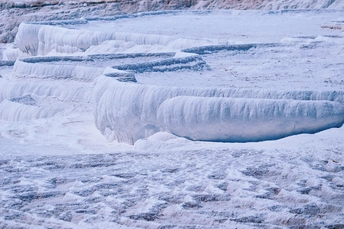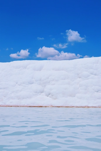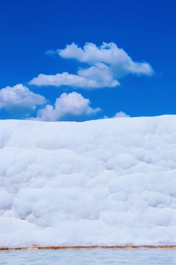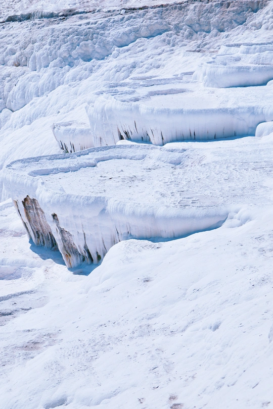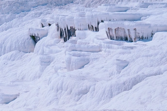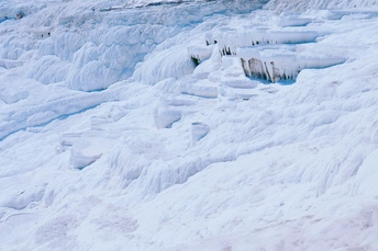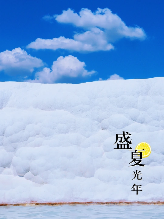 棉花波大名远扬 白的石灰岩像牛奶 也像一片片雪堆 温泉常年流动 浪漫的土耳其 浪漫的风景