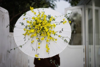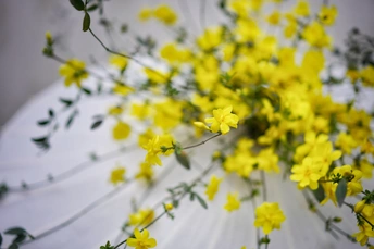 花神召集百花,商议在春天开放的花朵 ,唯有一个小姑娘毅然站了出来,说到“让我去,好吗?”,她穿着鹅黄色的裙子,娇羞而自信。花神微笑着点了点头,并给她取了个名字——‘迎春’。