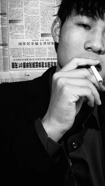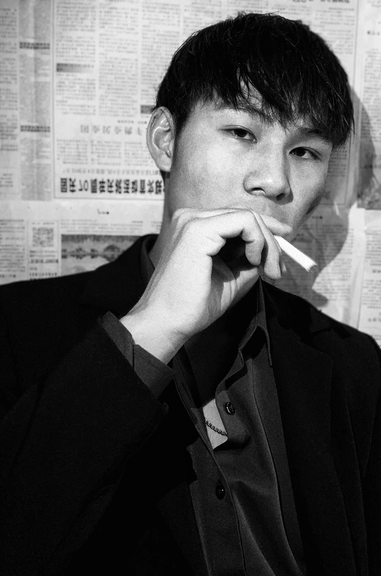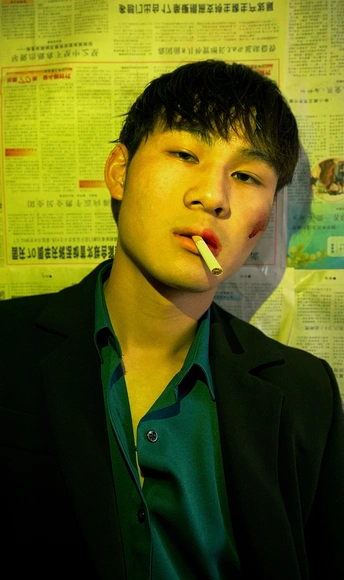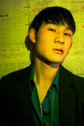 用黄色色卡打出黄光近照在脸上,背景用报纸更有意思。