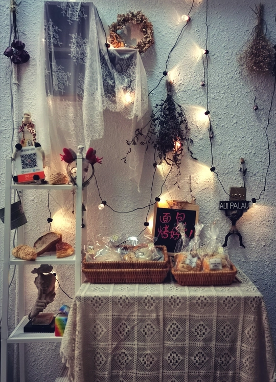 今天去跟朋友聊天,发现这个面包店虽然小,但是老板很是用心打扮它。于是拿起手机,帮她拍了照这些小画面。 生活中的美是完全取决于我们的态度和眼睛的,看惯了大片、人像,发一些小的东西,也是很有意思。