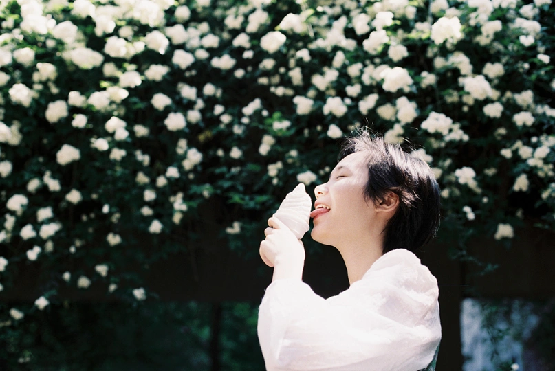 冰淇淋的滋味夏天和我都想了解。 七里香的季节就这样被我们寻回。 /倩小鱼胶片写真/ 📷:@倩小鱼zizi
