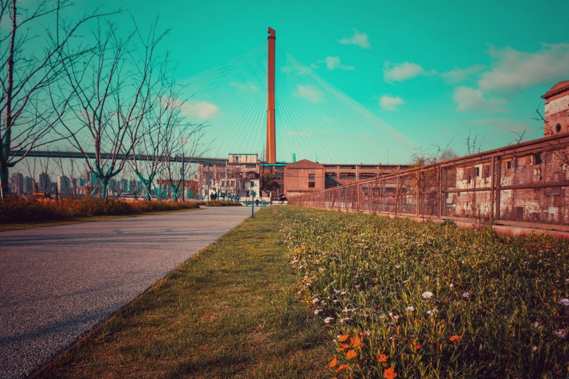 清晨的杨浦滨江春日里还透着瑟瑟的寒风,太阳已过天际线,吹着江风莫名的神清气爽。