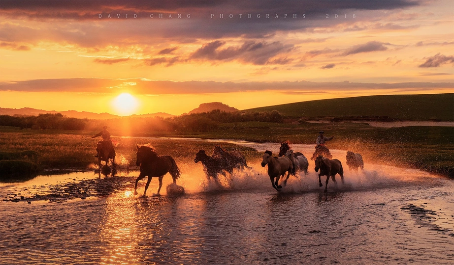 夕阳西下策马奔腾