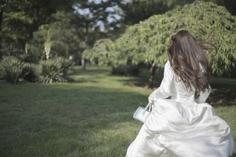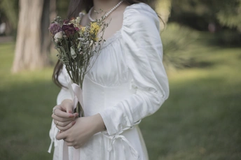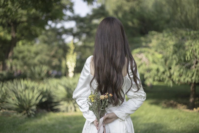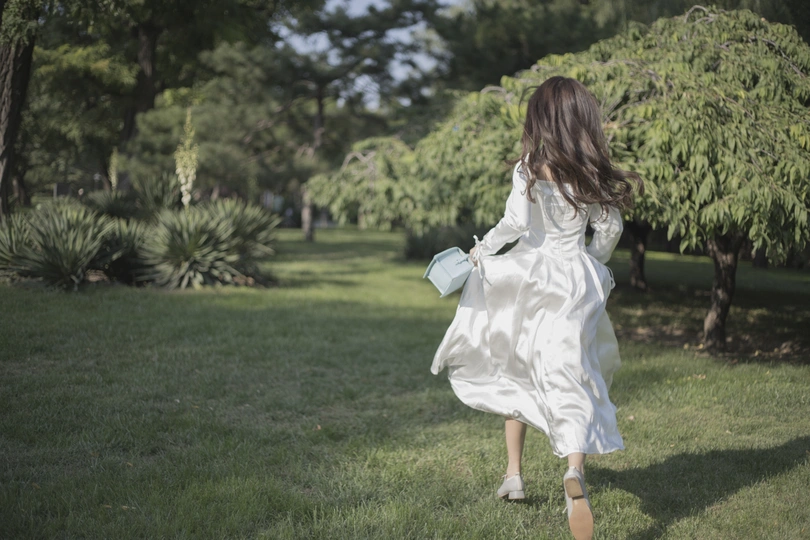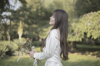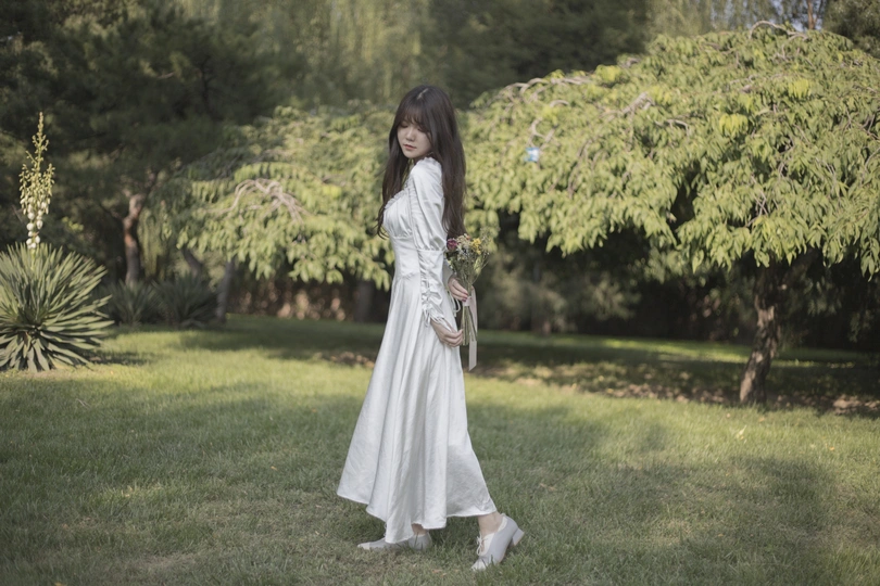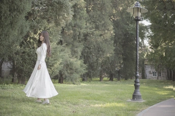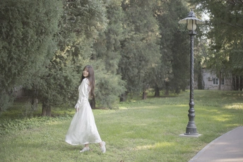 树林中的白色长裙少女