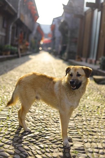 带小家伙们溜达溜达,街上人很少很少。。 狗狗好有镜头感啊,好似在微笑😁 夕阳下,古镇宁静的不得了 似乎回到了小时候的感觉 真好。