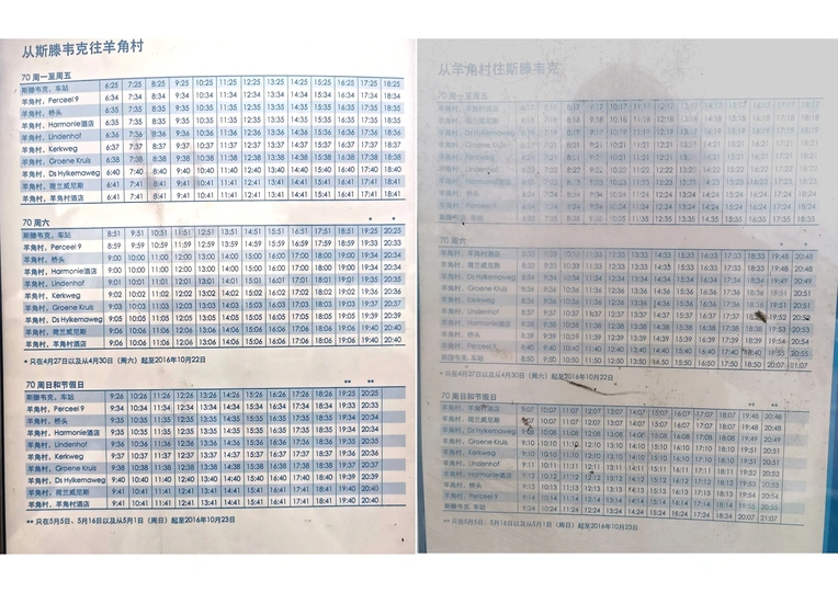 沿着小河走或者划船进入羊角村,每座房子坐落在一座小岛上。这里的屋顶有一大特色。是一种特制的芦苇屋顶,冬暖夏凉,结实耐用。据说每个屋顶至少十万欧。 去羊角村并不太方便,不管从哪里过去,除了自驾,基本都是火车倒公交。比如从阿姆斯特丹过去,要至少2个小时(有时等公交就半个多小时)。 荷兰的火车票非常昂贵,动辄几百欧。下面给大家推荐一个票,只要26欧,包含荷兰任何地方到羊角村的交通票(火车和公交)和羊角村1小时船票。 网站是:(discoverholland)https://www.discoverholland.com/daytrip/24/giethoorn-by-boat 购买giethoorn(羊角村) by boat票。购票成功成功后会邮件给PDF电子票。然后 打!印!打印的票才有效。 票没有的具体时间的约束,所以大家完全可以用谷歌地图查好路线和时间。 建议在羊角村的Donimee Hylkemaweg站下车,这里有游客服务中心,也有租船的地方。 图九附上羊角村到斯滕韦克steenwijk(这里可以坐火车)的公交时刻表。特别提示:非周末,离开羊角村的末班车是6点多。