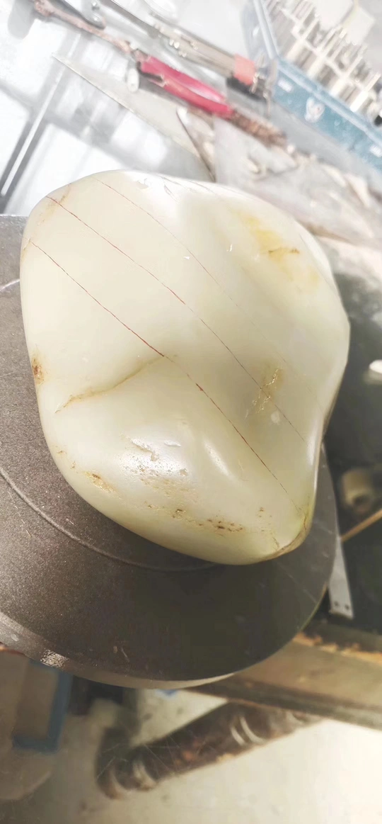 和田玉籽料百万重器开料现场