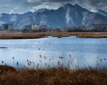纷纷扬扬的雪花,漂白了周围的山,鸟儿们的歌声,随着飞翔的节奏,洒满了整个春天。