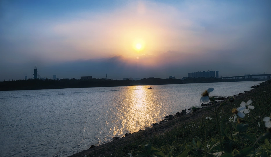 摄于五沙工业园彼岸之上,阳光照耀下的云层线条若隐若现,小野花被风不断的吹动,小渔船快速刮过泛起的浪花,让眼前的美景增加不少的乐趣。