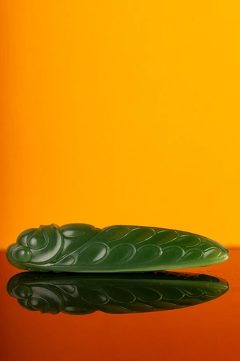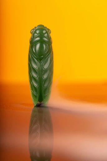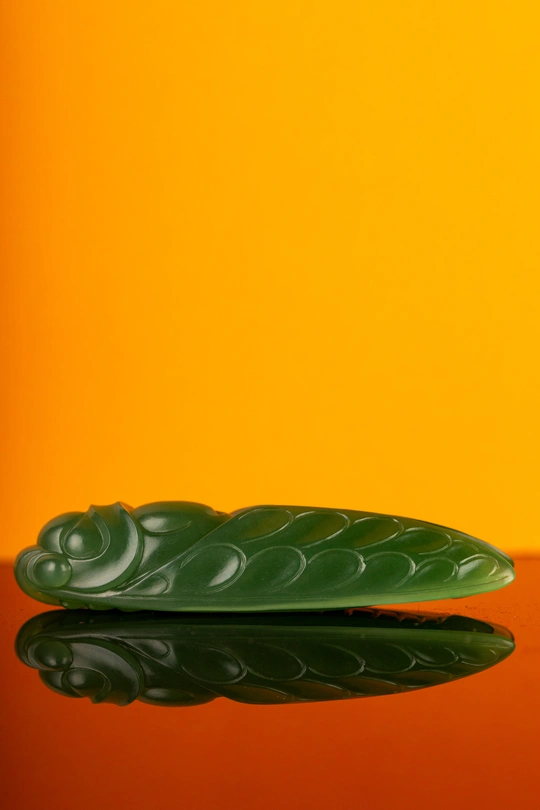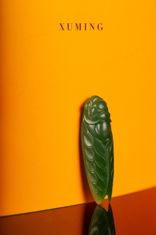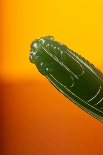 【碧玉一鸣惊人】 尺寸:46X14.5X10mm 重量:10克 顶级碧玉阳绿,色泽鲜艳,刻画细致,栩栩如生,脂粉浓厚,雕工细腻入微,当下这样美的碧玉色太难找,寓意不鸣则已,一鸣惊人!极美碧玉阳绿一鸣惊人,全品无暇 完美挂坠。
