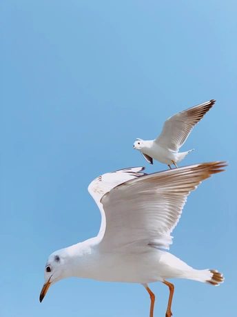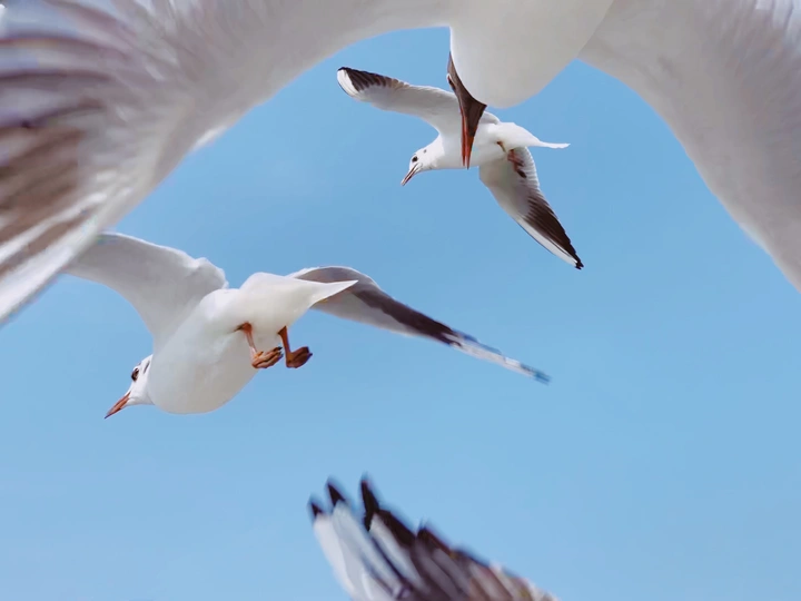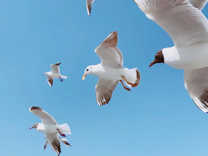 新冠肺炎的爆发,就是人类与自然背驰,结出的恶果。来源于自然并融入自然的海鸥,依然自由翱翔在天空。
