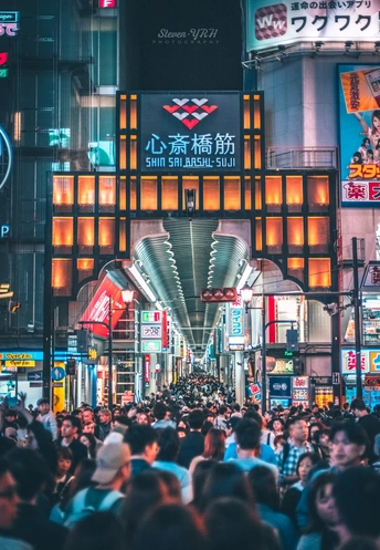 拍摄这张图的时候已是晚上11点多了,大阪的难波地区依然十分热闹。因为是五一节期间,有很多游客。身处心斋桥的人群之中,所听到的语言里五分之一是中文,其中三分之一是上海话。有那么一瞬间,我甚至以为自己回到了上海。