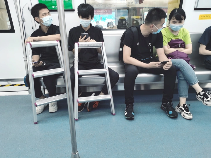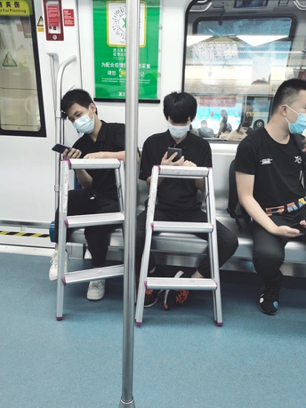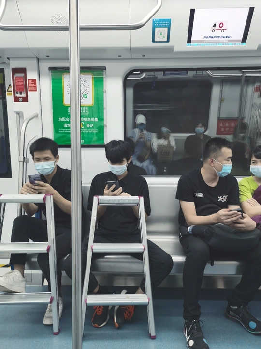 一次回来的路上遇见一群拿梯子的小哥哥冲进地铁
