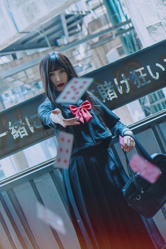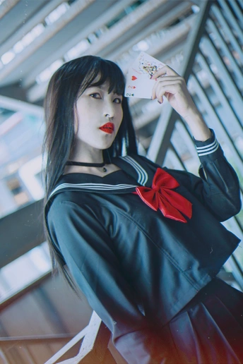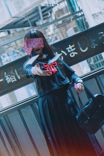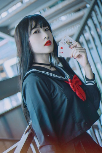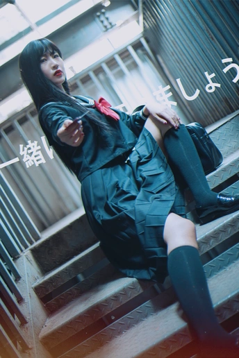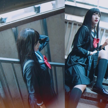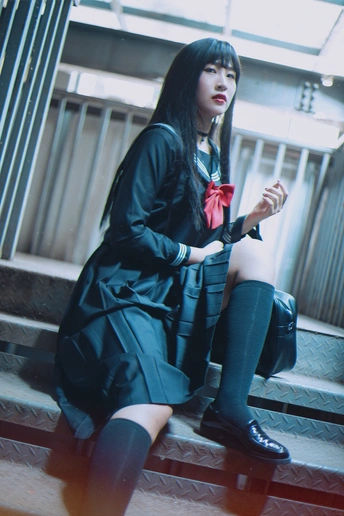小姐姐想拍不良JK,可是找不到感觉,最后商量下来决定拍暗黑系JK,结合了地狱少女和狂赌深渊两个动漫的感觉。