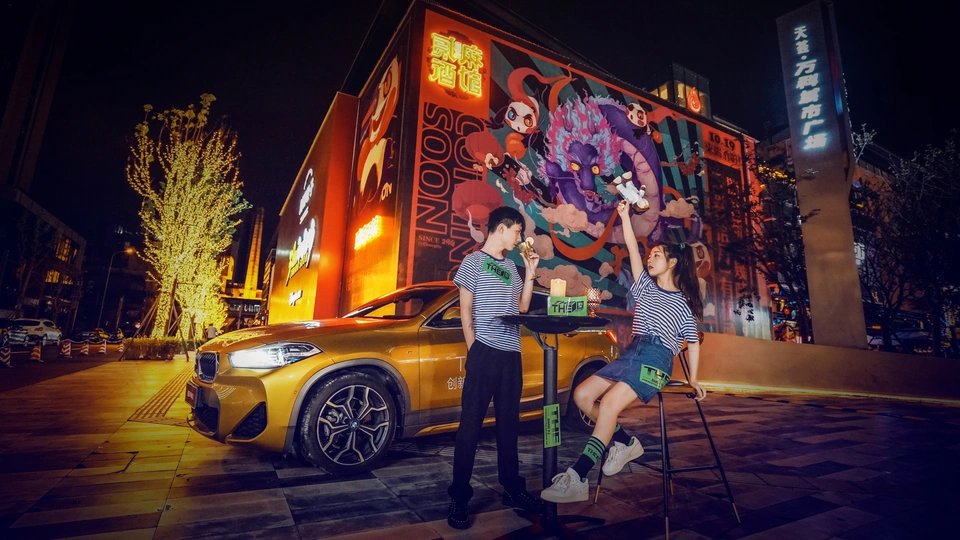 为今年六一儿童节的成都13家经销商拍摄BMWX2成都元素。