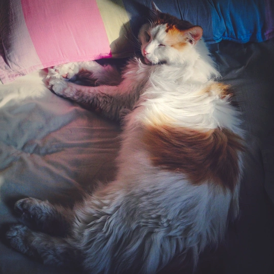 下午躺在床上晒着太阳睡到蒙圈,我走过去迷迷糊糊地看着我,抓拍了一张。虽然是一只公猫,却给我一种民国时期穿着旗袍女人的感觉妖艳的不要不要的。