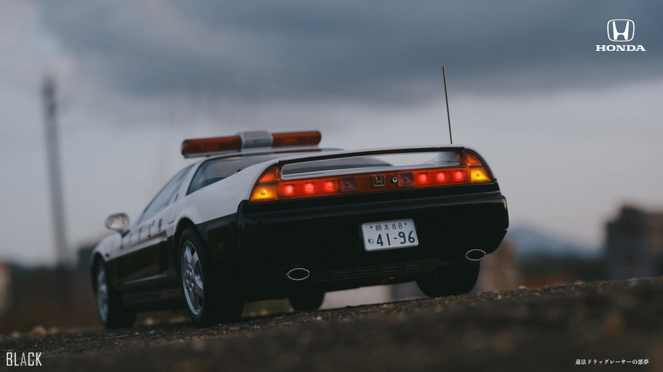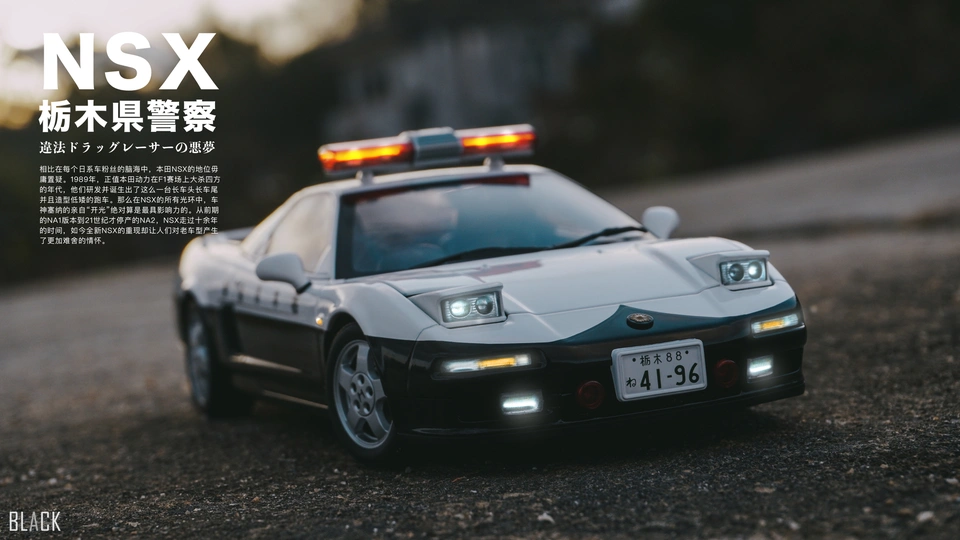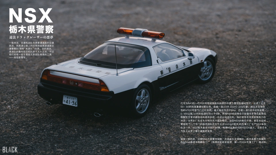 巨经典的1990版NSX,好的设计注定是流芳百世,今天看来一样是帅到掉渣。这辆NSX本田送给栃木县警方的,用以打击非法飙车党,并且当时NSX的工厂就是在栃木县。 很少拍车,试着拍一辑,本身自己蛮喜欢汽车的,其中两三张制作了杂志风的排版效果,觉得还有那么点味道,哈哈。