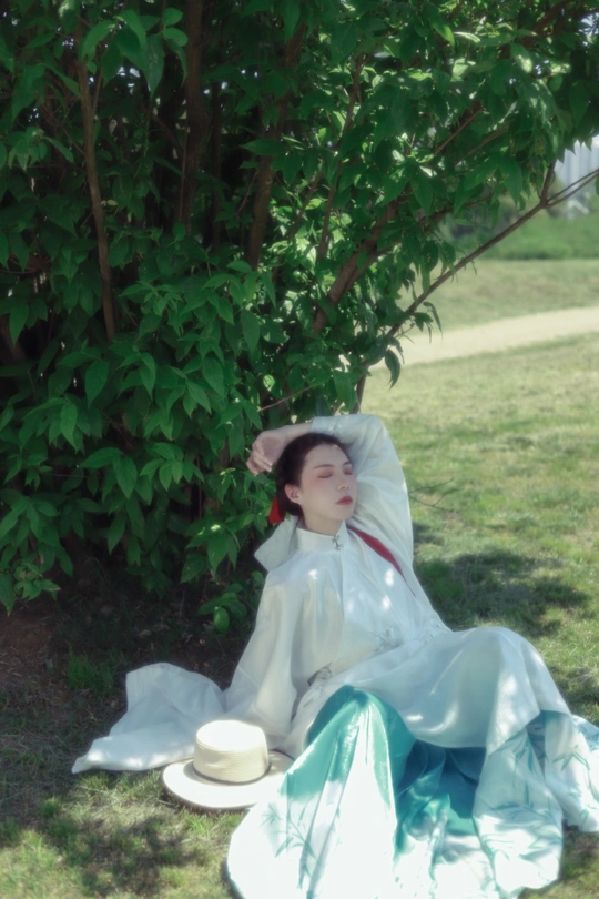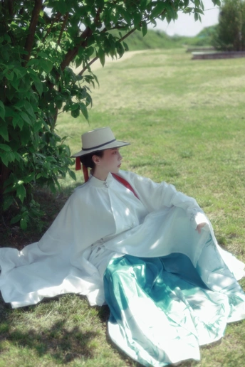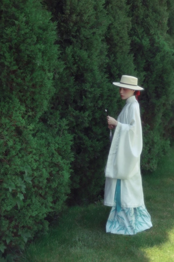 许多次都是以人为主题,这次的主题,是光与颜色。绿色,蓝色,白色穿插在一起,加上一点点红色的点缀,整个画面显得和谐且宁静。以人为载体,把自然以颜色的形式结合在一起。如果说这是一个颜色的舞台,那么阳光就像一道聚光灯,使画面重新拥有了焦点。