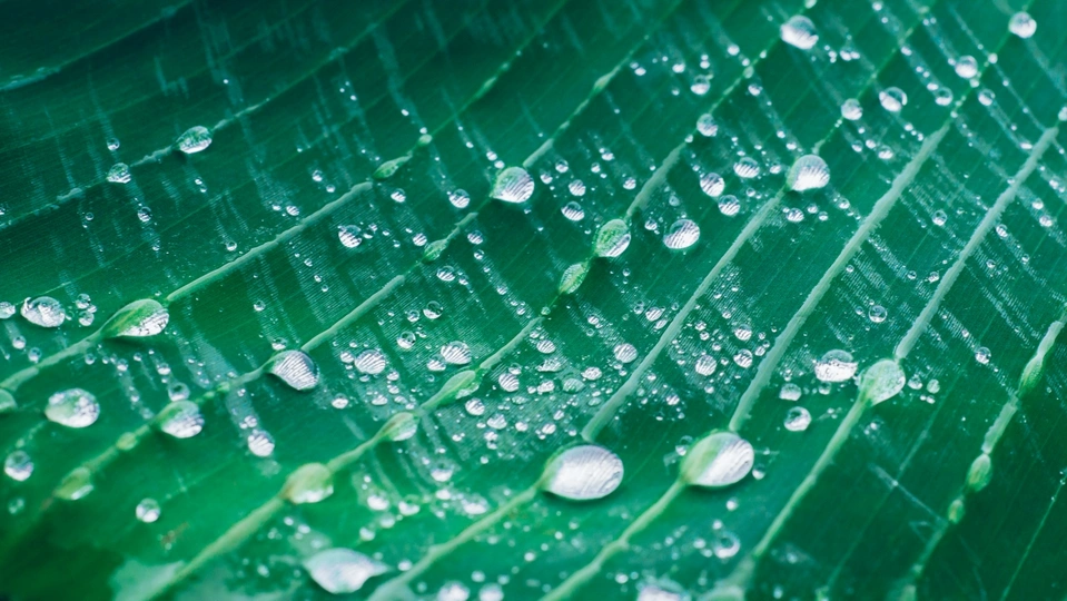 雨后的芭蕉叶, 雨滴成点 叶脉成线 蕉叶成面