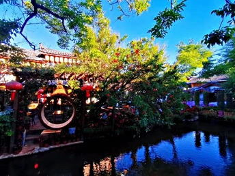 丽江古城位于云南省丽江市古城区,又名大研镇,坐落在丽江坝中部,始建于宋末元初(公元13世纪后期),地处云贵高原,面积为7.279平方公里。 丽江古城内的街道依山傍水修建,以红色角砾岩铺就,有四方街、木府、五凤楼、黑龙潭、文昌宫、王丕震纪念馆、雪山书院、王家庄基督教堂、方国瑜故居、白马龙潭寺、顾彼得旧居、净莲寺、普贤寺等景点。丽江为第二批被批准的中国历史文化名城之一,是中国以整座古城申报世界文化遗产获得成功的两座古城之一。