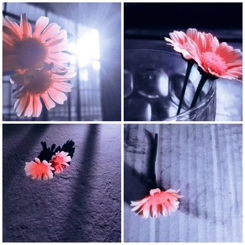 在菜园里看到了这两朵花,就觉得好好看,那天又是下午五点左右,太阳没那么烈了,光线较平常的很柔和许多,突发奇想,花配上这光应该可以发生些什么,就弄了起来。