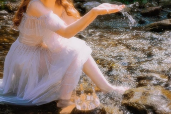 星光镜与复古柔焦的共同作用下,诞生的法式发光少女人像。水既温柔又闪耀,这是两种美的并存。 炎炎夏日,带上水晶皇冠👑玩儿水去吧