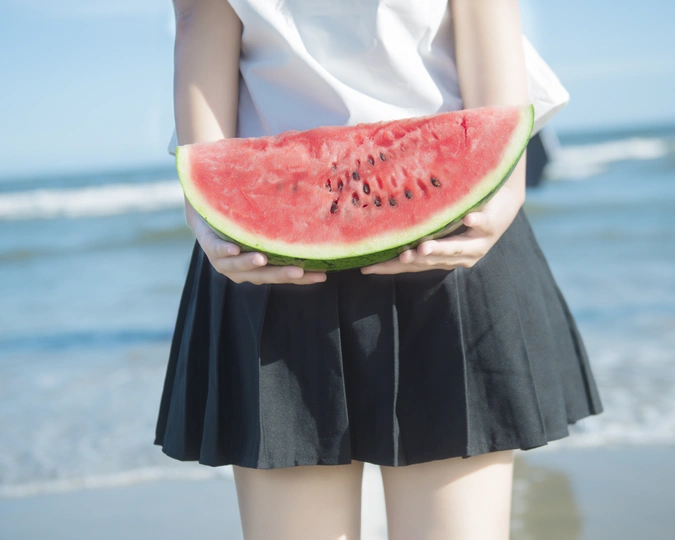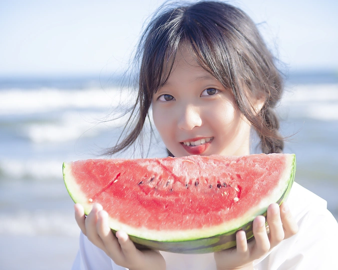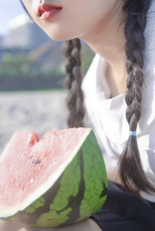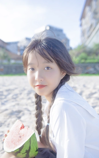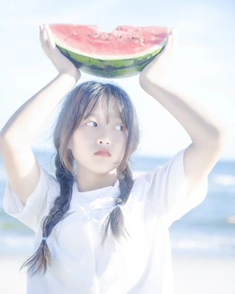 在网上约拍的小妹妹 想拍夏天吃瓜的日系海边作品 前期和模特沟通挺顺利 拍摄过程也很满意 在这个夏天,用相机抓住你年轻的样子
