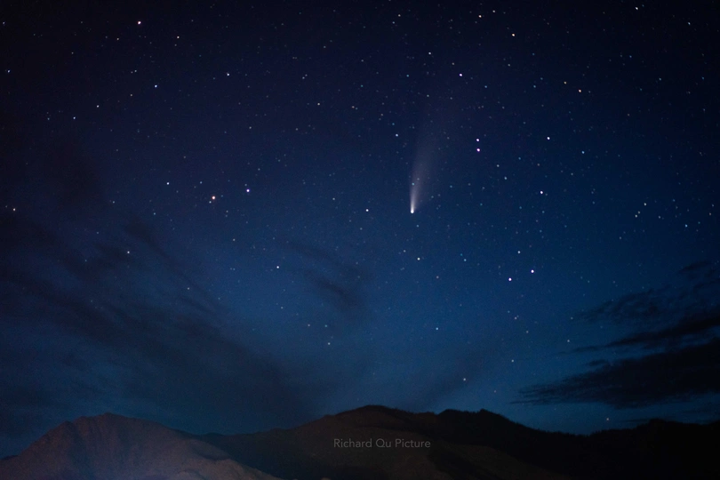从北京到新疆终于拍到了彗星Neowise,下一次就是6800年以后了。拍摄于新疆阿尔泰区可可托海,当地海拔1386三级黑,彗星肉眼可见