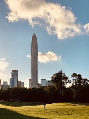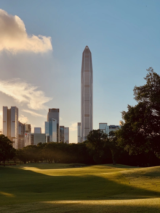 早起围绕深圳第一高楼平安大厦拍深圳高尔夫球场