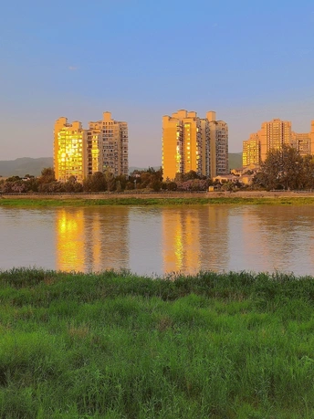 夕阳为这些住户打上了盏盏耀眼的灯光