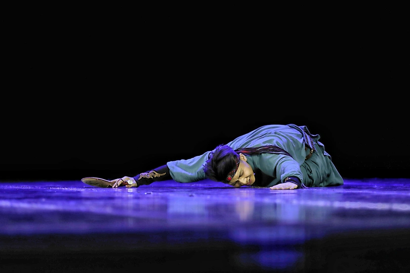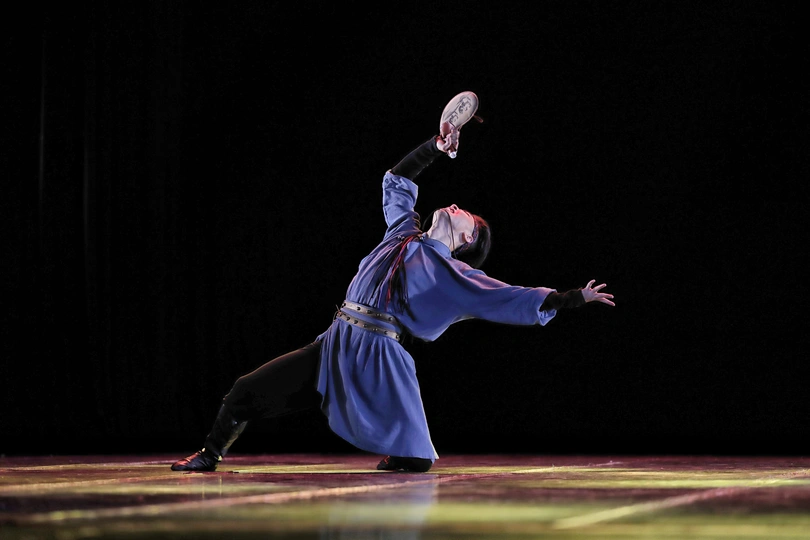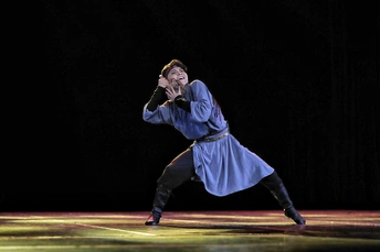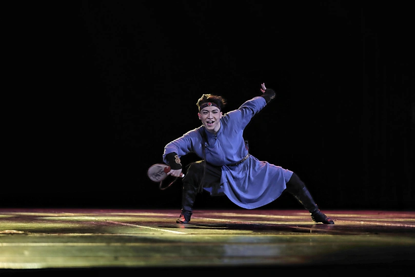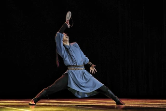 蒙古大草原,蓝天白云、弯弯河水、茵茵绿草、群群牛羊、点点毡房、袅袅炊烟,茫茫无际的天然牧场清新宁静,令人心胸豁然开朗。舞者内心飘摇的思绪,通过节奏、空间、力度的变化,给予了蒙古人平时的民族性格以独特的艺术魅力与审美意味。
