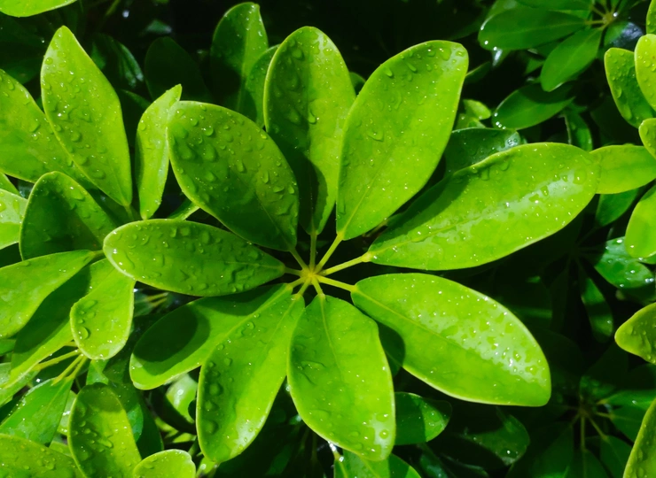 鹅掌柴叶子水珠