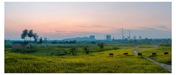 傍晚的渭河岸边的草滩,近处的草,远处渭河对岸的工业区,粉色的晚霞,烟气袅袅的烟囱,在未出镜的车来车往的渭河大桥旁边,一切都显得那么安静而梦幻!器材佳能,全景接片。