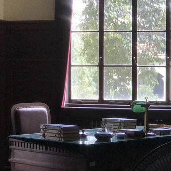 一个人的坚毅,是不需要什么肩膀,但却实实在在渴盼陪伴。我在窗玻璃的叶影绰绰下回望到了他认真伏案的侧影,名为功勋的军章用链条锁住辉煌的炫影。他面我宛然似笑,此刻,我心,天下为公,与他永恒的心连为一脉。我望着手上的枫叶,安然笑了。