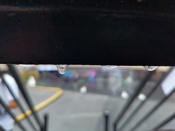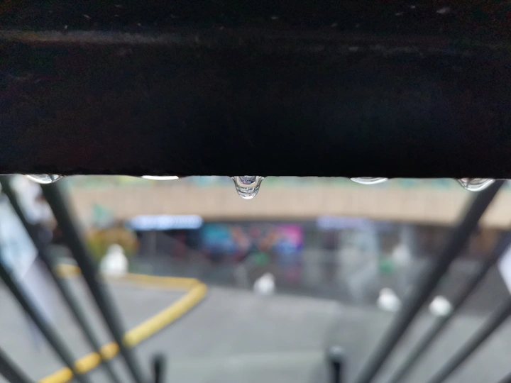 这是一节台阶下将要坠落的水滴,用手机微距拍摄,显得晶莹剔透,好似涤荡之后的洁净世界。