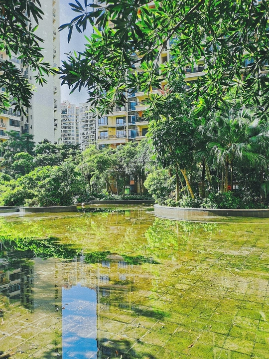 小区,刚下完雨,我在小区散步的时候偶然发现并觉得别有一番风味,潮湿的天气中,映衬着湖中的生物,光线打在上面,我觉得很美。拍摄机器为荣耀30