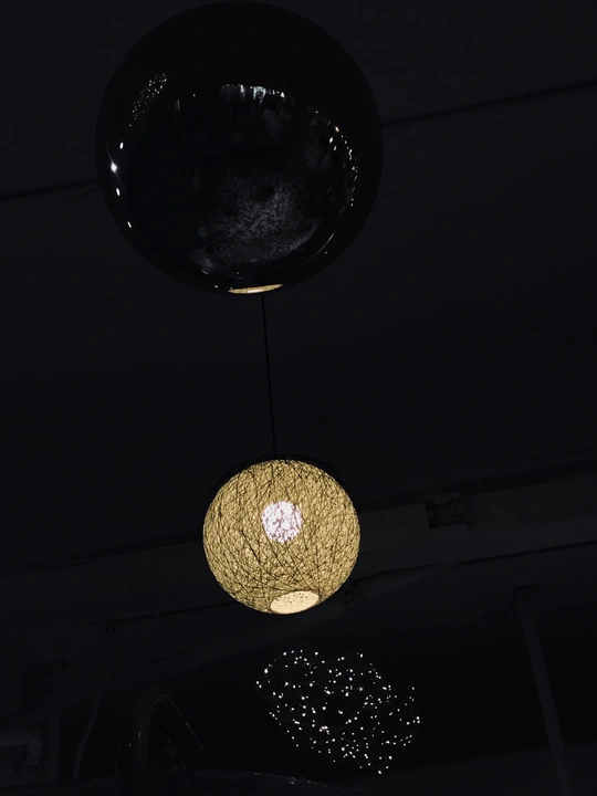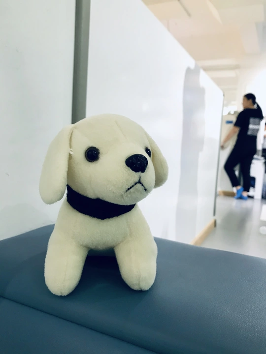 周末,带小孩游玩笨鸟亲子餐厅,女儿特喜欢这玩具小狗,于是手机顺手拍下玩具小狗和它看着的天花板的装饰灯。