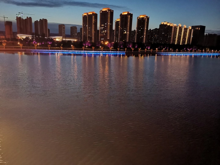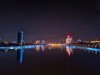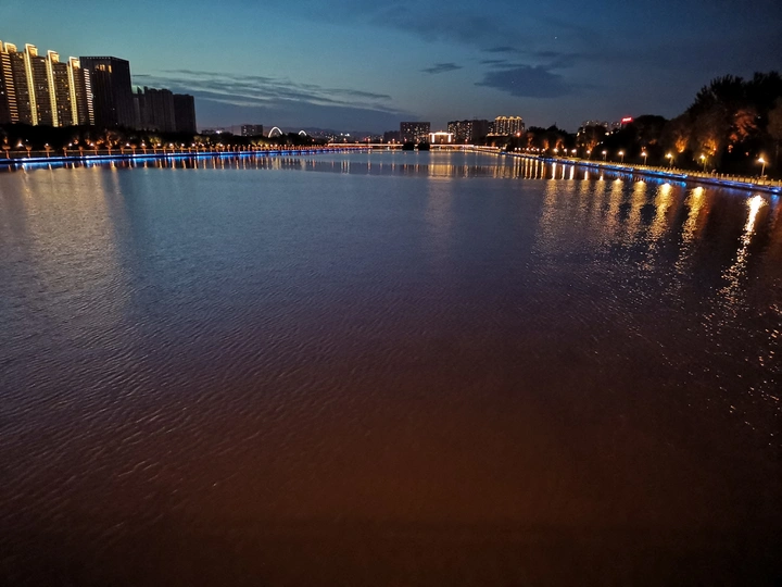 这是七夕之夜的太原市汾河。 清冷的月光下,美丽的汾河将整个太原市都映衬的灿烂辉煌,完美凸显出了锦绣太原的魅力风景。