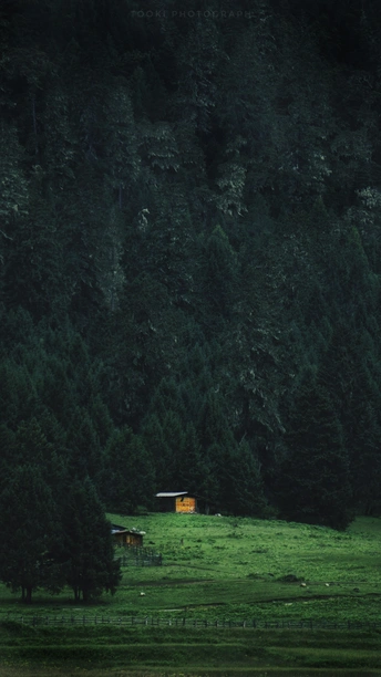阳光暴晒下的色彩失衡,只能靠后期拯救了,虽然我也是垃圾后期,但我是真的很喜欢这张照片呀??? 层层叠叠的林海之下,是遗世独立的小木屋,寂静又温暖,是理想生活的样子。 拍摄:sony a6100 微单 后期:snapseed APP 拍摄地:西藏鲁朗高山牧场