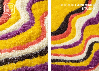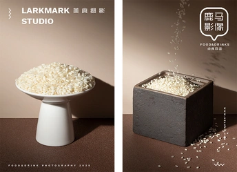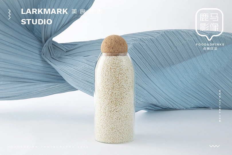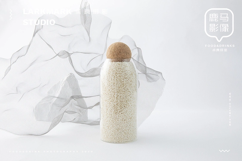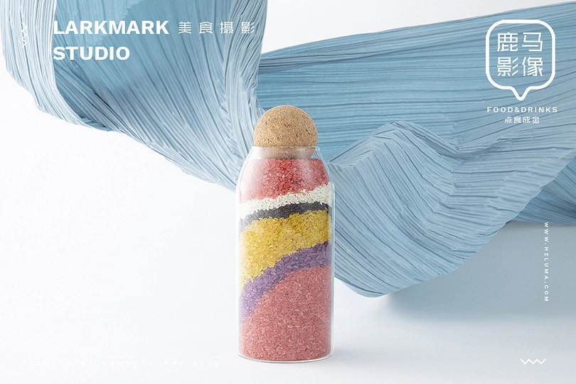 一组云南的五彩大米拍摄,其实客户的包装并不出色,我们使用了玻璃瓶去装大米,让人能看清食物美丽的一面