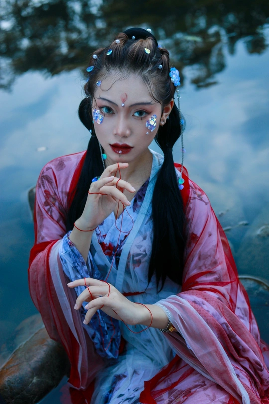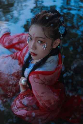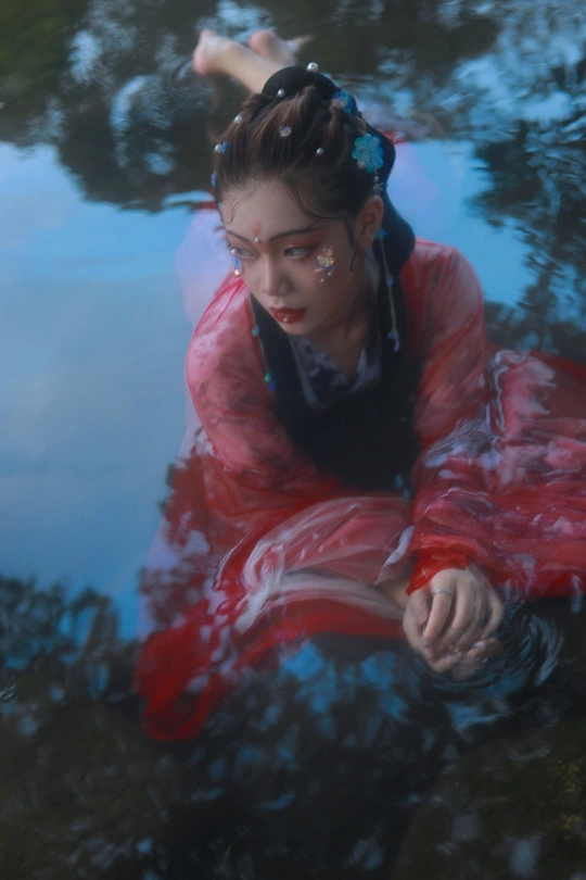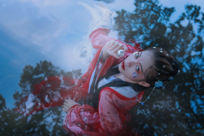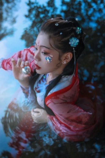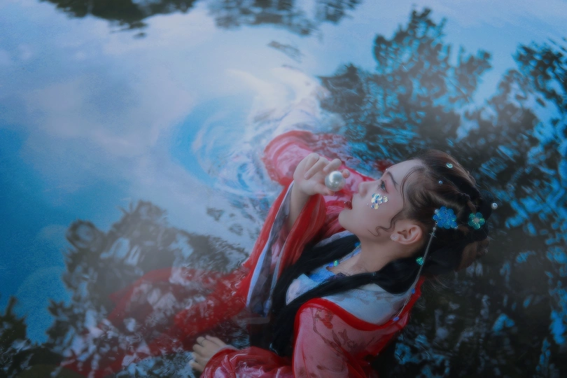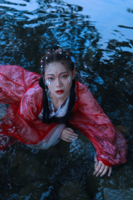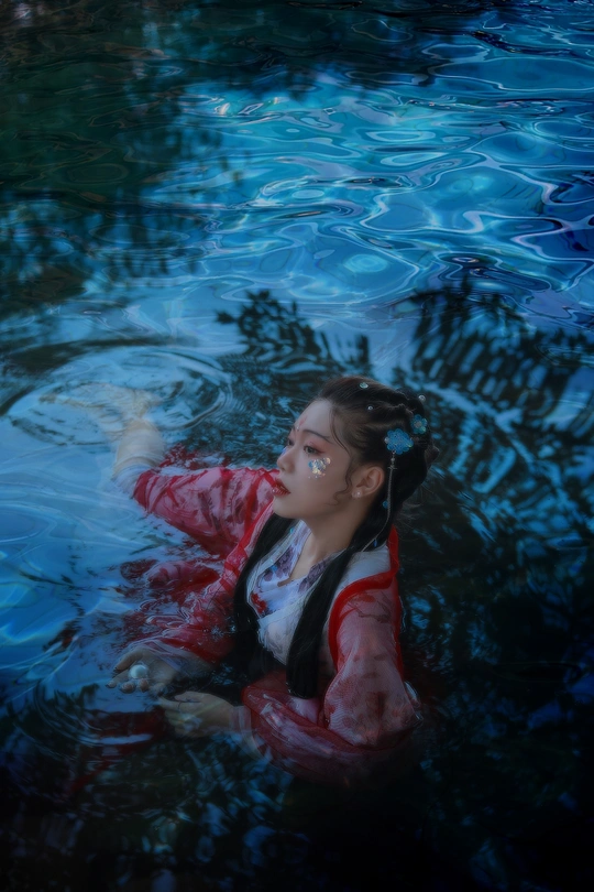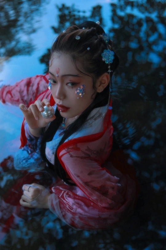 鲛人从水出, 寓人家, 积日卖绢。 将去, 从主人索一器, 泣而成珠满盘, 以与主人。 摄影/后期/妆造:我