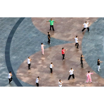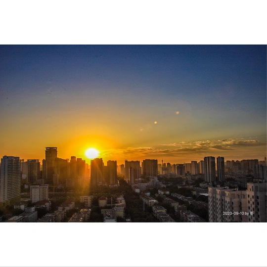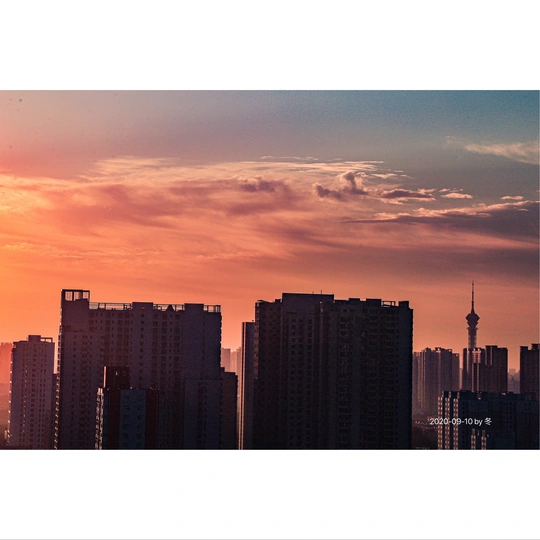 一大早起来爬到楼顶看日出,还是有点儿晚了…太阳公公也已经爬上了楼顶…霞光中的浮云在不同的位置呈现出不同的颜色~远处的山清晰可见~橘红色的墙上映着我的身影~好美[偷笑]