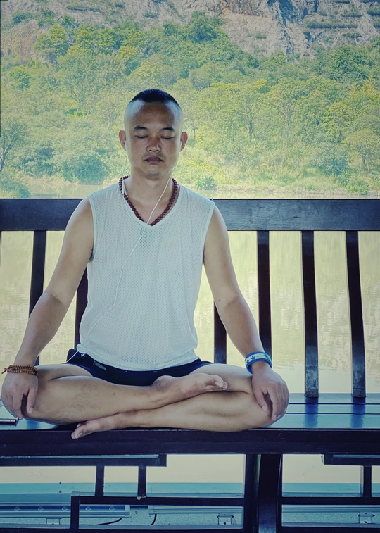 公园里风雨桥的廊椅上一位打坐的男士,开始远远的拍了一张,发现偷拍并没有被发现就越走越近,得到了一张比较满意的。希望没有打扰到这位男士🙏清静修心。拍照不仅考验技术还很锻炼胆量和脸皮✊ 跟着卷毛佟老师学习手机摄影,百日打卡活动第四十三天。加油💪