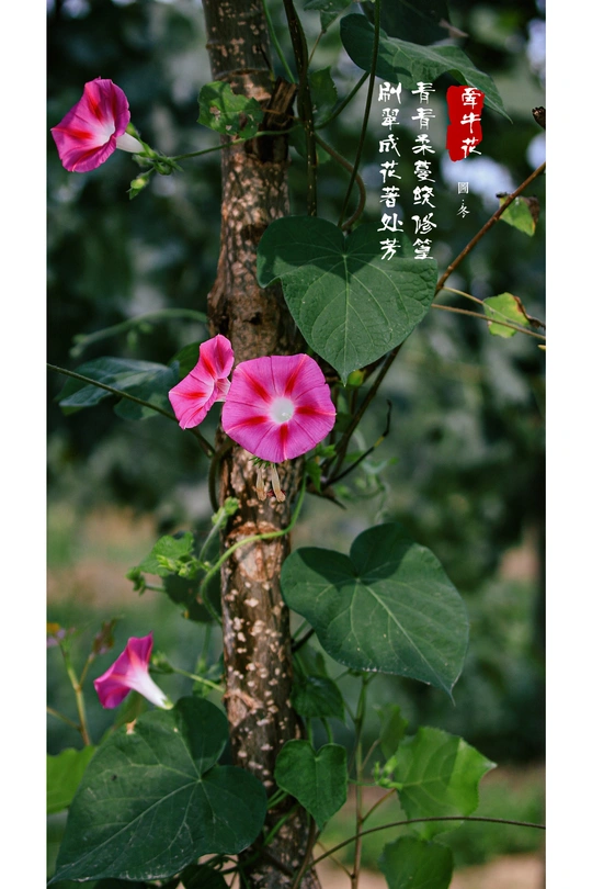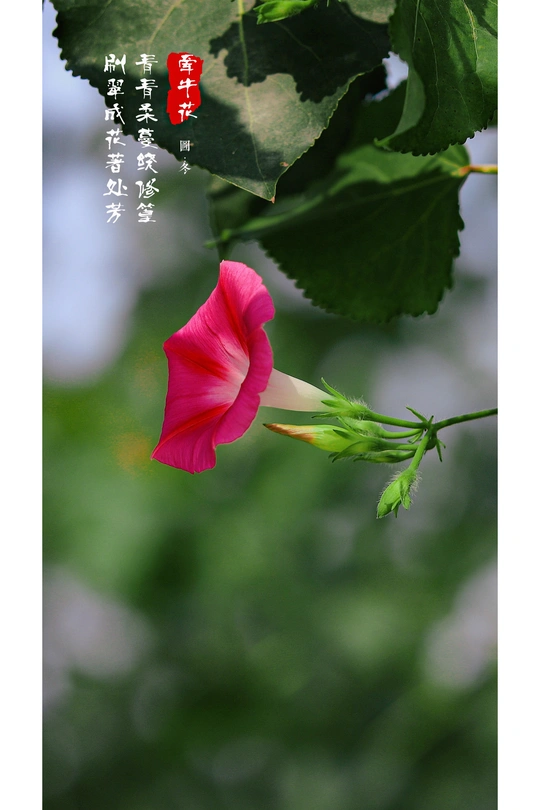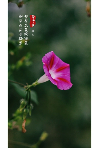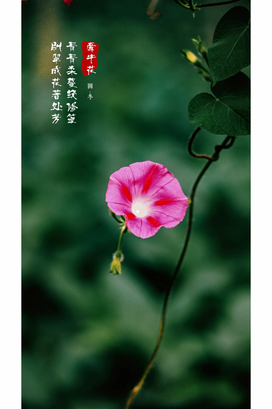牵牛花,虽然只有细细的藤和稀疏的绿叶,她,不因自己的孱弱而自卑,不因自己的渺小而自悯,不因长在荒野而自惭,不因自己平凡而自秽,合着大自然的节拍愉悦的随风摇曳。