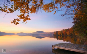 阿岗昆公园东门外,秋天的早晨,太阳还没有出来,在这湖畔,满目秋色,心旷神怡。