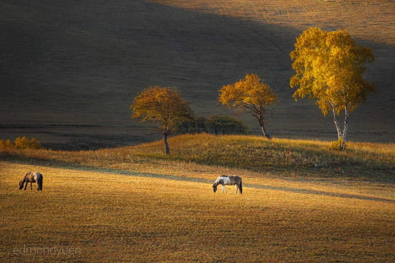 这张照片是离开坝上那天,刚拍完日出,准备到北京,开车前一刻在路边抓拍的,算是一个临别礼物,也是一个意外收获,清晨的阳光温柔地打在马及树上,显得格外温馨;虽然不是什么大场景,但喜欢这宁静和谐的气氛!