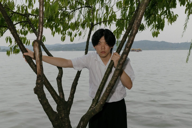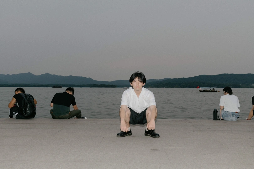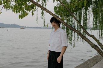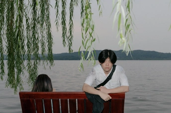 西湖傍晚,一个一个孤独的人坐在长椅上看着湖面,一阵风吹过,点上一支烟,挣扎自己知道。