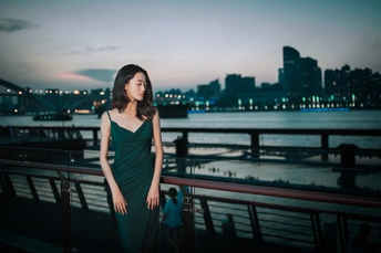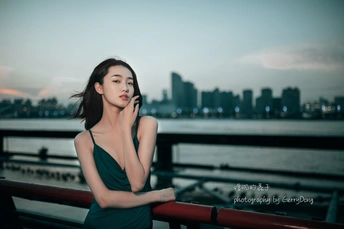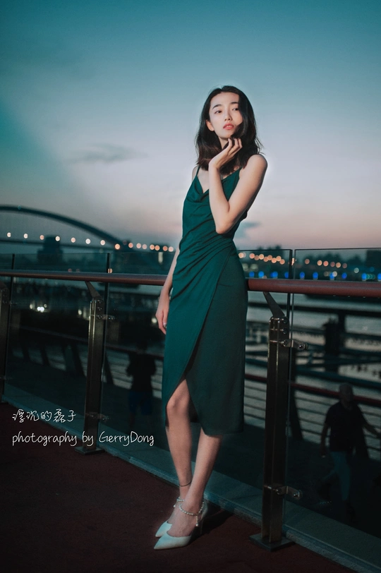 这是一组在世博公园附近拍摄的暮光少女夜景?♂️ 「场地选择」:世博公园,不得不说世博公园江边部分的场景太适合拍夜景少女写真,卢浦大桥的灯光加上魔都三件套,大光圈虚化出迷人光斑,场景会很有层次感。? 「拍摄时间」:晚上6点-7点左右,天还没有那么暗,还有些晚霞。这个时间段的光线比较暗,需要给模特补光,适合拍顺光、侧光、逆光等不同角度,让照片更灵气。☀️而且江边风很大也不热,还是蛮适合拍照的,尤其在夏天,天气还是要稍微注意一些。 「色调控制」:模特的服装为墨绿色搭配夜景,也决定了色调是以青绿暗调为主。远处的灯光让画面显得更有层次感,绿色有了素净的青和厚重的墨,搭配不同拍摄视角,即便是同组照片,也能产生多种美妙化学反应,让人心动。