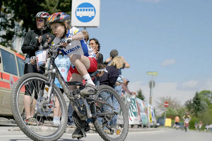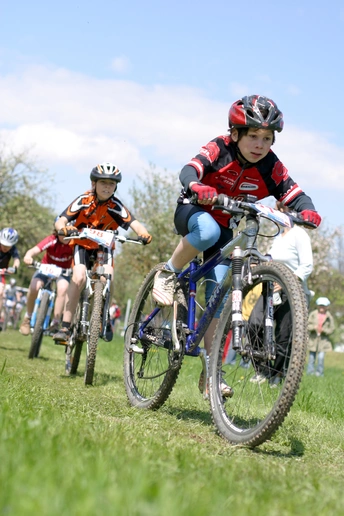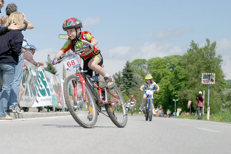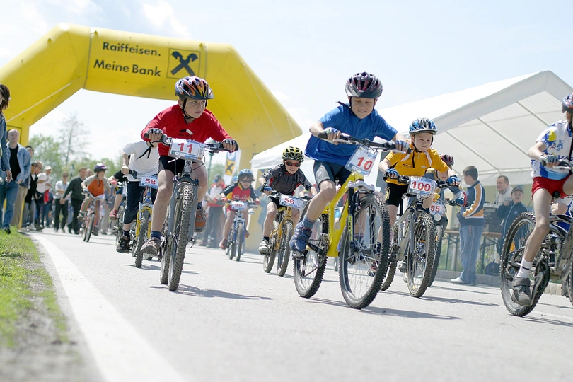 拍的一组奥地利维也纳乡村山地自行车比赛